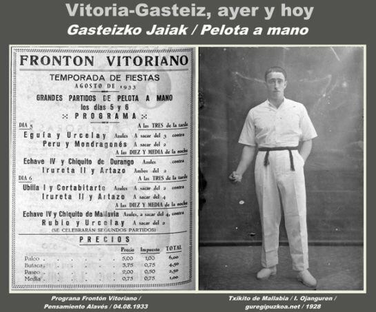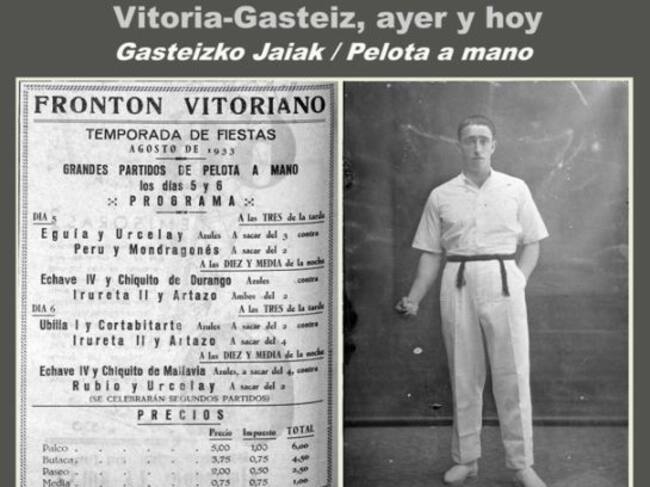La pelota, ha estado siempre presente en La Blanca. En 1933 la programación en el Frontón Vitoriano, para ver a los profesionales de la mano era doble, a las tres de la tarde y a las diez y media de la noche. Juan de Biasteri nos explica el porque del horario de los partidos a las 3: “Los aficionados a la pelota también querían estar presentes en las corridas de toros, así que el intendente del Frontón Vitoriano tenia que adaptar el horario, ofreciendo los partidos antes y después del festejo taurino”.