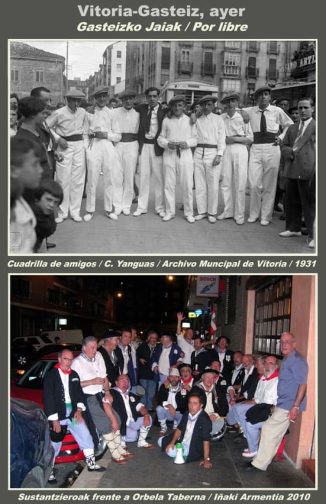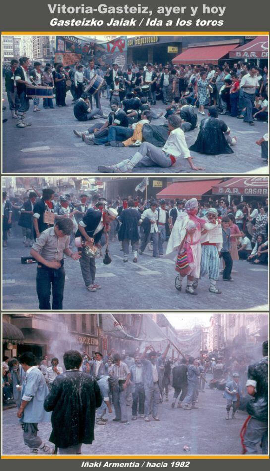 Una imagen mas cercana en el tiempo, obtenida por Fede Arocena en 1982, nos presenta a la cuadrilla Gasteiztarrak, la cual comenzó su andadura en 1974 y que también sigue en la brecha.