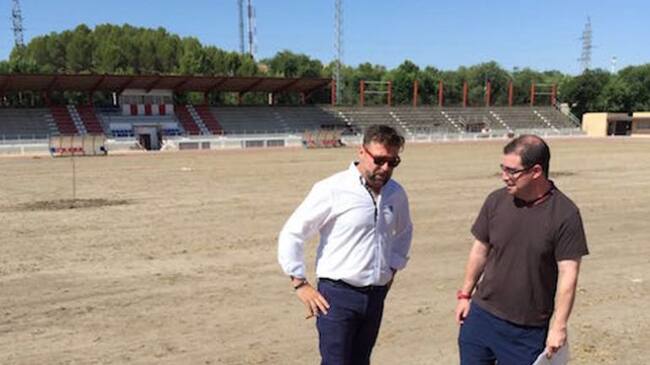 El concejal de deportes de Valdemoro repasa las obras en el campo de fútbol