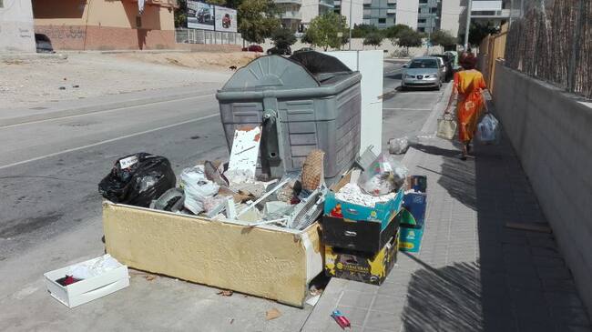 Bolsas de basura y enseres fuera de su contenedor, en una calle de la zona Norte / Sonia Martín