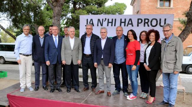 Organitzadors i autoritats presents a l'acte en defensa del ferrocarril públic. / ACN