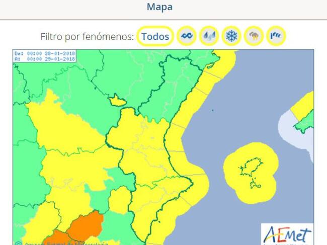 Además, también hay riesgo de fenómenos costeros en el litoral de Alicante con viento del noroeste de fuerza 3 a 4 localmente; 5 arreciendo a nordeste de fuerza 6 durante la tarde.