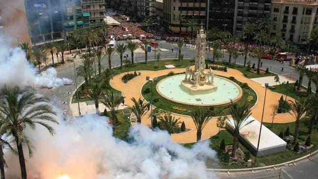 Mascletá vista desde uno de los pisos de la plaza de Los Luceros, en una imagen de archivo / Ayuntamiento de Alicante