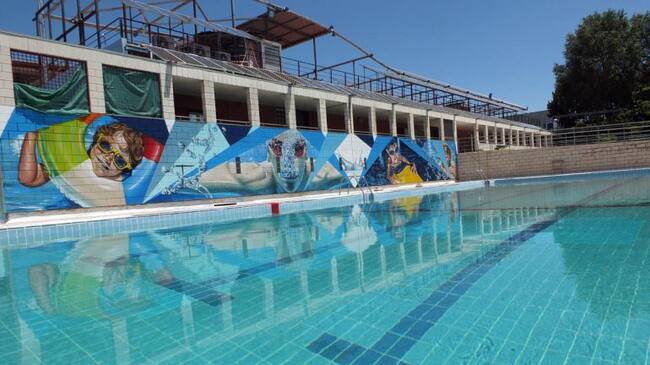 Un mural adorna el vaso principal de la piscina de verano / Ayuntamiento de Paracuellos de Jarama