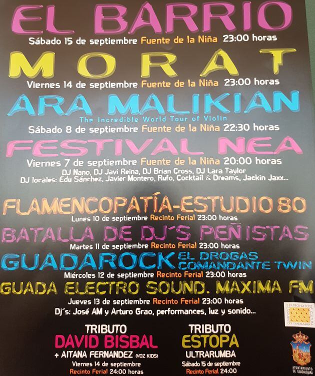Ya se han desvelado todos los detalles de las Ferias y Fiestas de Guadalajara 2018. El Ayuntamiento ha presentado un programa que incluye más de un centenar de propuestas y que se prolongará, como siempre, desde finales de agosto con el traslado de la Antigua hasta finales de septiembre.