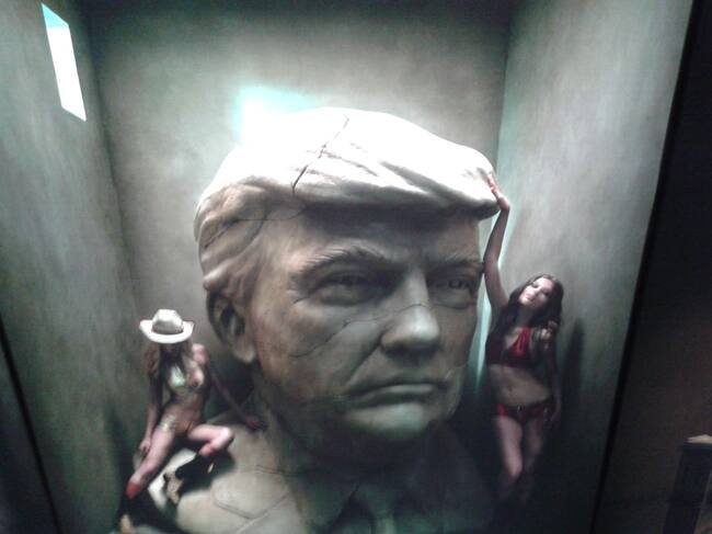 Fotografías tomadas en una caja de casi cuatro metros de altura por más de dos y medio de ancho y profundidad, donde el autor, con una cuidada escenografía hecha a mano, refleja cosas como el auge de las redes sociales, la ecología, la ciencia, la religión, el 11-S o la II Guerra Mundial, entre otros muchos temas y personajes. A la vez combina todo con otras fotografías de carácter más personal en las que aparecen padres, hermanas, su mujer y hasta la evolución de su propia hija. Uno de los muros está copado por ese repaso de hechos significativo ocurridos en parte del siglo XX y XXI como la llegada de Trump al poder, la muerte de Lady Di, Marilyn, o la frontera México – EEUU.