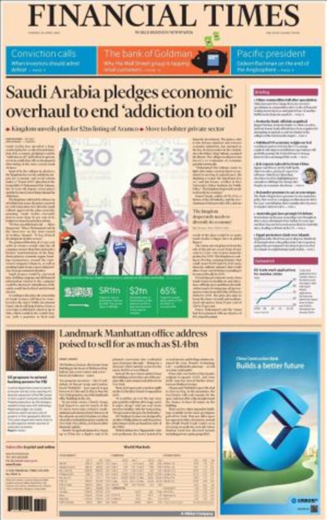 Como el precio del petróleo, que seguirá bajo pese a los intentos de los países productores de elevarlo. El último movimiento en el sector lo lleva a cabo Arabia Saudí con la creación de Aramco, una sociedad que superará en valor bursátil a Apple con 1,8 billones de euros y que, para Financial Times, va a suponer un balón de oxígeno para transformar la economía saudí. En un editorial, advierte, no obstante, de defraudar las expectativas sociales y políticas al circunscribir sólo las transformaciones a la economía.