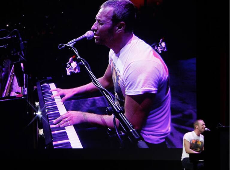 Chris Martin, de Coldplay, canta en la presentación de los nuevos productos de Apple