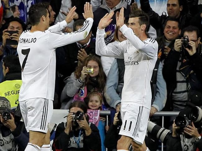 Cristiano Ronaldo y Gareth Bale se saludan para celebrar el primer gol del galés en el Santiago Bernabéu.(CADENA SER)