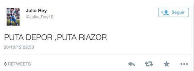 'Puta Depor, puta Riazor' podía leerse en la red social del joven pontevedrés en el año 2012. El historial de su cuenta, ya deshabilitada, ha provocado su salida del club coruñés dejando patente una vez más el peligro de la publicación de mensajes ofensivos en dicha plataforma.