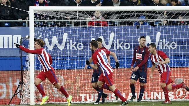 El Atlético de Madrid ha ganado hoy sábado por 0-2 al Eibar en el campo de Ipurúa gracias a los goles de Saúl y Griezmann en la segunda parte, en un partido en el que los rojiblancos fueron de menos a más.
