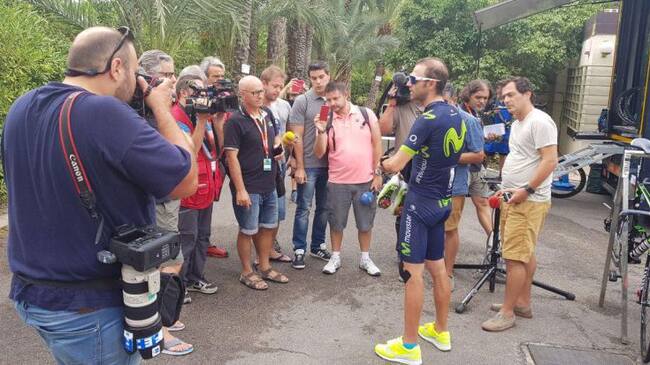 Valverde atiende a la prensa en la jornada de descanso / MOVISTAR TEAM