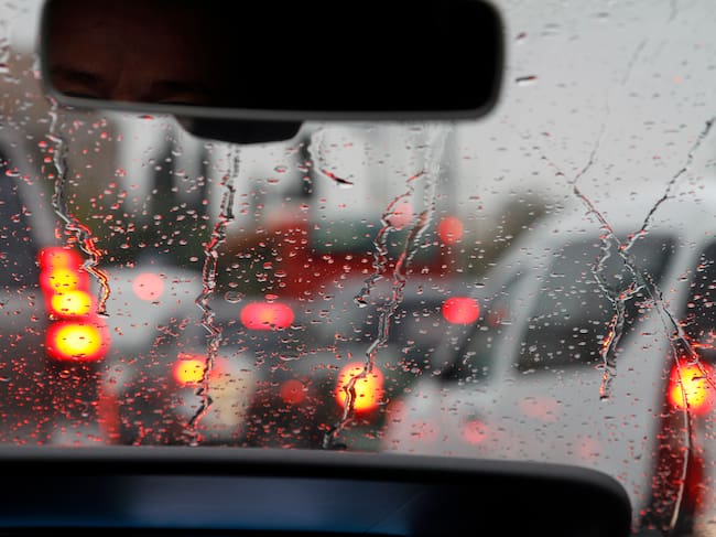 View from car with rain drops of traffic jam in the street / IsabelPavia