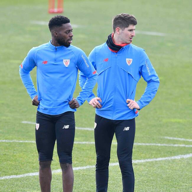 Oihan Sancet junto a Iñaki Williams en el entrenamiento de este sábado