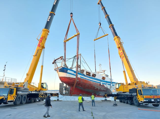 Los restos del pesquero se han colocado en tierra en Botafoch, antes de su desguace. Se ha extraído la totalidad del combustible que quedaba en el pesquero evitando así el riesgo de vertido de hidrocarburos al mar. En total unos 1.500 litros.
