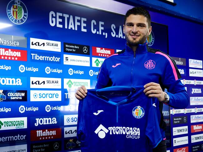 GRAF6871. GETAFE, 27/01/2022.- El internacional turco Okay Yokuslu, cedido desde el Celta hasta el final de la presente temporada, durante su presentación como nuevo jugador del Getafe. EFE/ Luca Piergiovanni / LUCA PIERGIOVANNI (EFE)