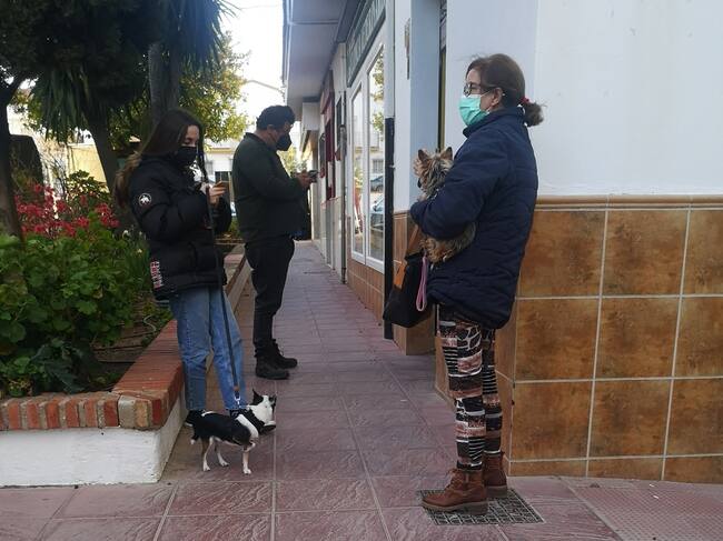 Varios ciudadanos esperan su turno a las puertas de un centro veterinario en Ronda / Ezequiel Macías