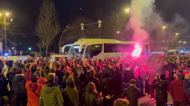 La llegada del autobús del Madrid