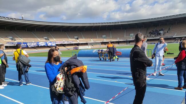 Nada más acabar el encuentro fue evacuado al hospital, ya que tenía mareos, pero tras ser examinado únicamente sufre un latigazo cervical.