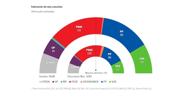 PP y Vox superan en 15 escaños a PSOE y Unidas Podemos pero no tendrían mayoría suficiente para gobernar