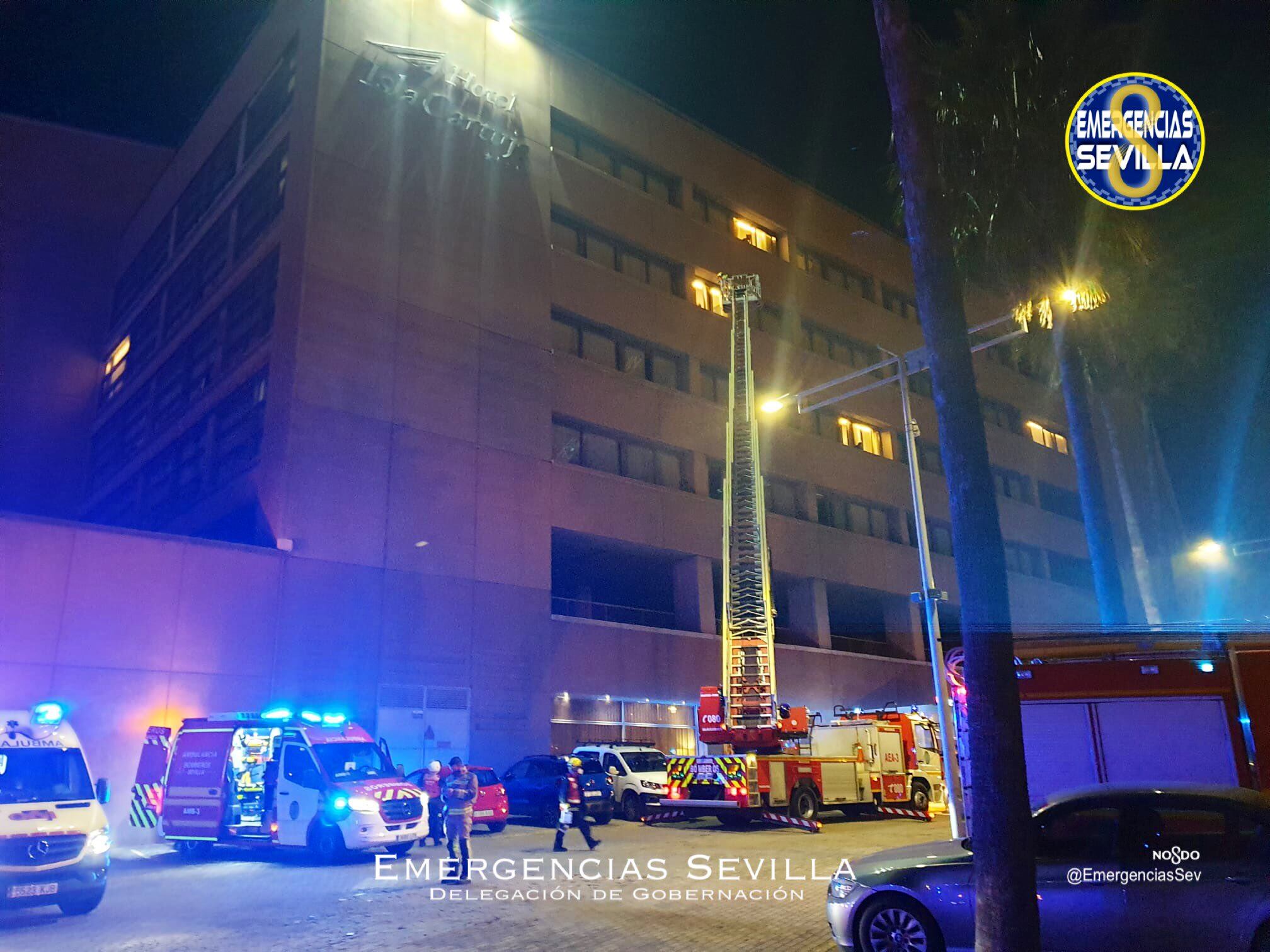 Siete heridos leves por inhalación de humos en un incendio en el hotel Exe Cartuja