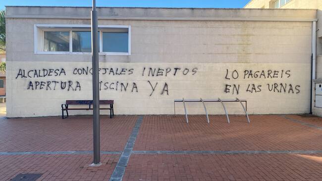 Un hartazgo que ha traspasado ciertas líneas en las últimas horas. Y es que la fachada de la citada instalación ha amanecido con pintadas contra la propia primera edil y el resto del equipo de gobierno. "Alcaldesa, concejales ineptos, apertura piscina ya", reza el mensaje, con otra advertencia a su derecha. "Lo pagaréis en las urnas", refleja. No hay ninguna reivindicación ni seña que indique quién ha podido realizar este acto.