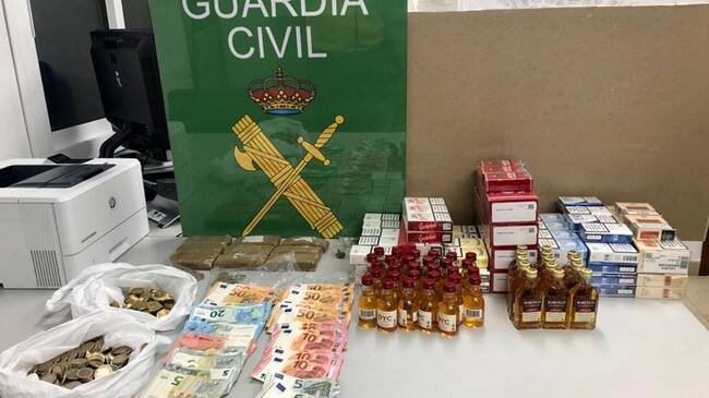 Además de las sustancias estupefacientes, los guardias civiles encontraron en el kiosko 162 cajetillas de tabaco de contrabando, 43 botellas de alcohol sin las precintas reglamentarias y 1500 euros de dinero en efectivo.