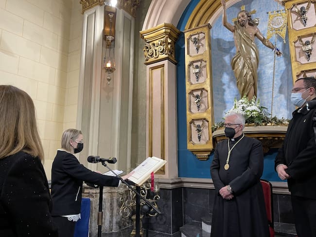 El capellán, Miguel Solana Gil, ha sido el encargado de presidir el acto, en el que se ha leído el acta de la junta de elección de Hermano Mayor, así como el Decreto del obispo de ratificación del nombramiento. Solana ha dicho: “Estamos llamados a hacer una cofradía del siglo XXI y el hecho de que sea una mujer Hermana Mayor es un avance. Tenemos que avanzar y hacerlo como cofradía. Tenemos que vivir la unidad, la comunión y, sobre todo, la experiencia de fe. Tenemos que trabajar por salir en procesión, pero con la mira puesta en Cristo Resucitado. Que el título de Hermana Mayor lo sea de servicio y de construir una cofradía para el siglo XXI”.