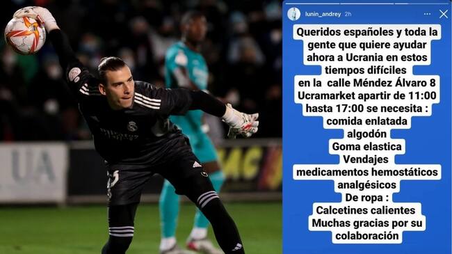 El portero ucraniano del Real Madrid, Andriy Lunin, ha publicado en su redes sociales un llamamiento a los ciudadanos españoles donde les pide ayuda. Según reveló en rueda de prensa el técnico Carlo Ancelotti, el guardameta está afectado y admitió que está "bajo de ánimo".