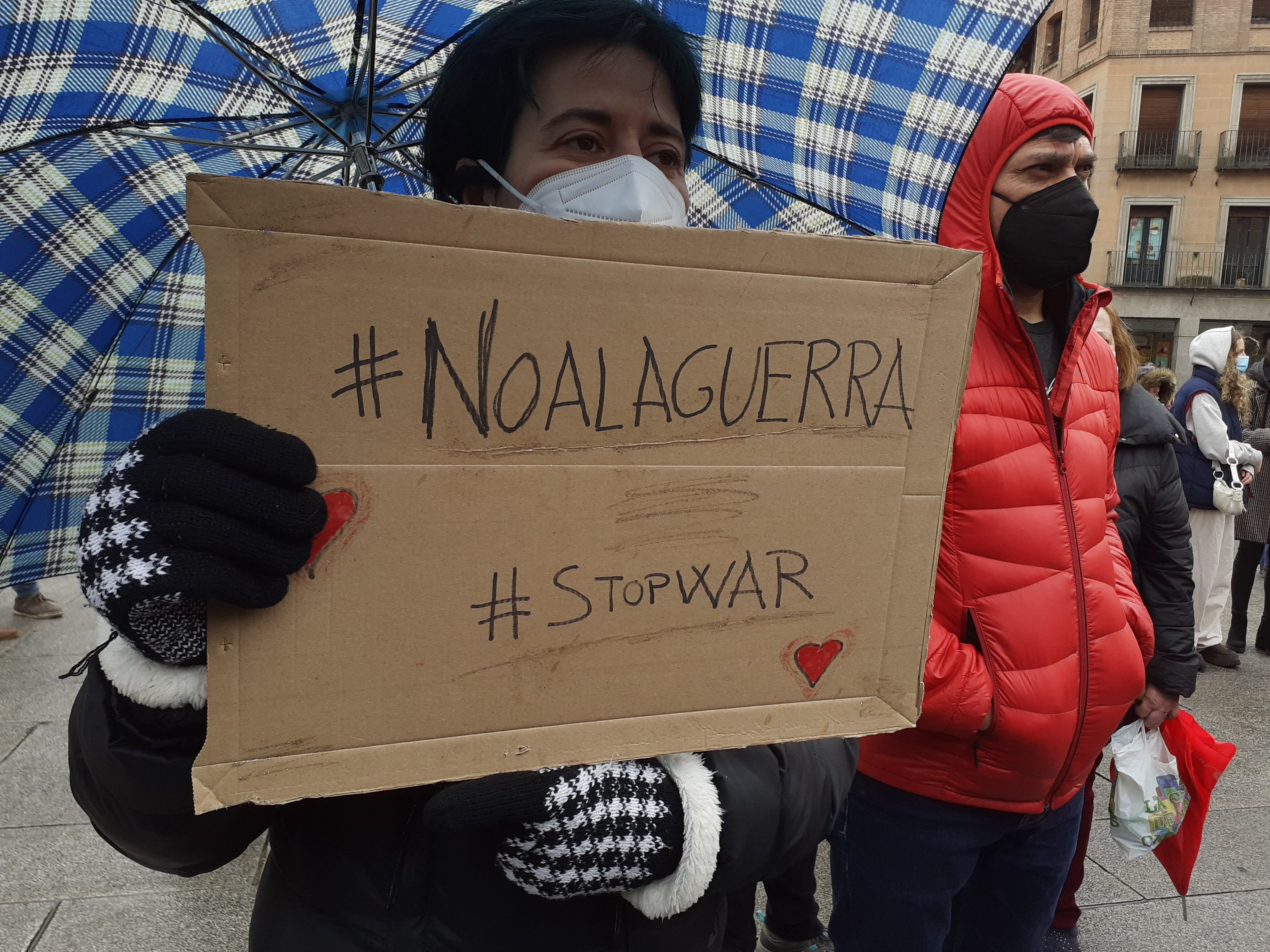 En Segovia la manifestación ha estado promovida por el Foro Social de Segovia y se ha celebrado en el Azoguejo. Allí se han concentrado cerca de 300 personas, que han querido mostrar su rechazo a la guerra y exigir la vía diplomática al conflicto bélico.