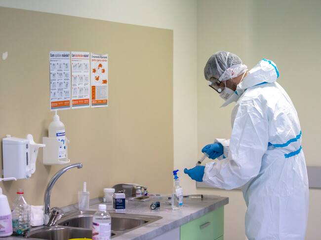 Chisinau (Moldova, Republic Of), 25/02/2022.- A health worker inside the Covid-19 section of the Timofei Mosneaga Republican Clinical Hospital in Chisinau, Moldova, 25 February 2022. (Moldavia) EFE/EPA/DUMITRU DORU / DUMITRU DORU (EFE)