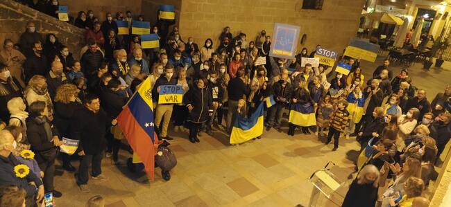 Centenares de personas se dieron cita ayer por la tarde-noche, en la plaza de la Iglesia de Xàbia, para secundar la concentración convocada por el Ayuntamiento, contra la guerra en Ucrania, en defensa de la paz y en solidaridad con el pueblo ucraniano.