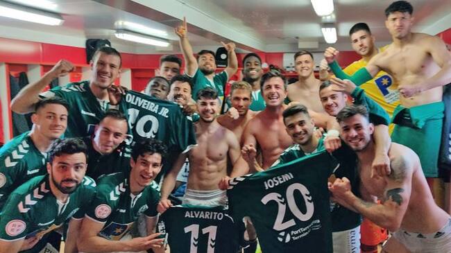 Celebración de la victoria en el vestuario tras el Granada B 1 Marchamalo 2