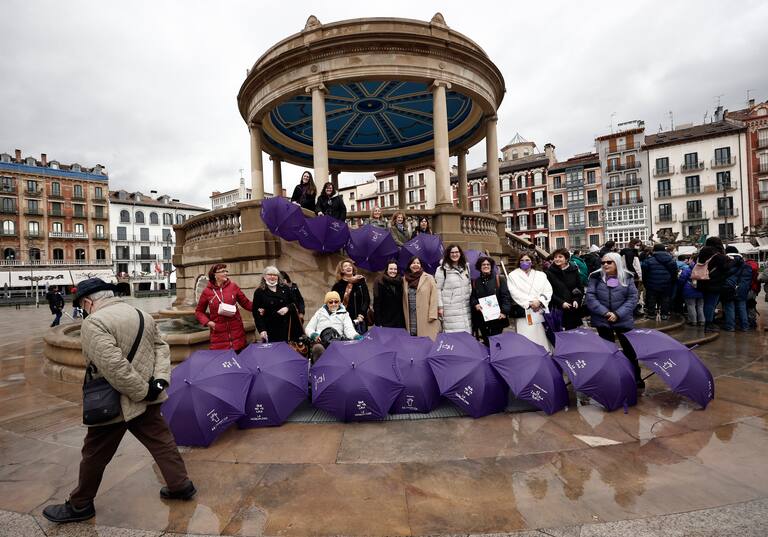 Concentración de mujeres para reivindicar el feminismo en Pamplona.