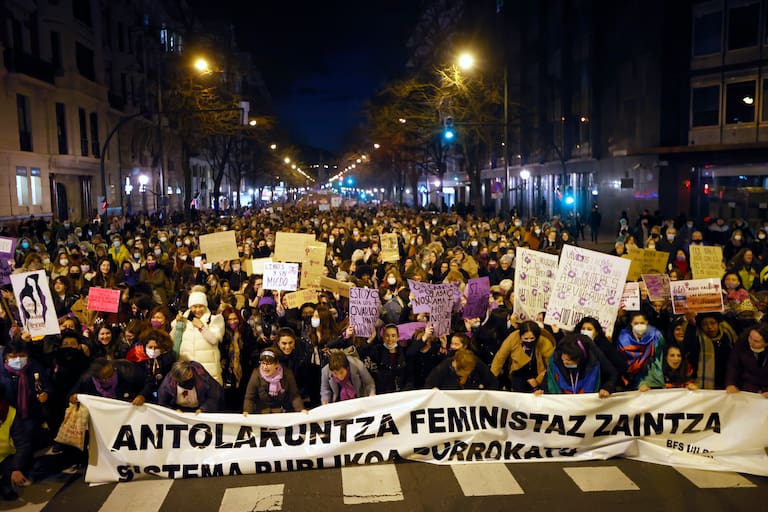 BILBAO, 08/03/2022.- Miles de personas participan en una marcha con motivo del Día Internacional de la Mujer en Bilbao, este martes. EFE/Luis Tejido