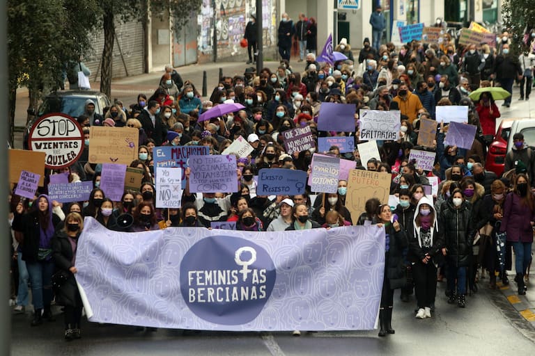 Mujeres participan en la manifestación del 8M en Ponferrada (León).