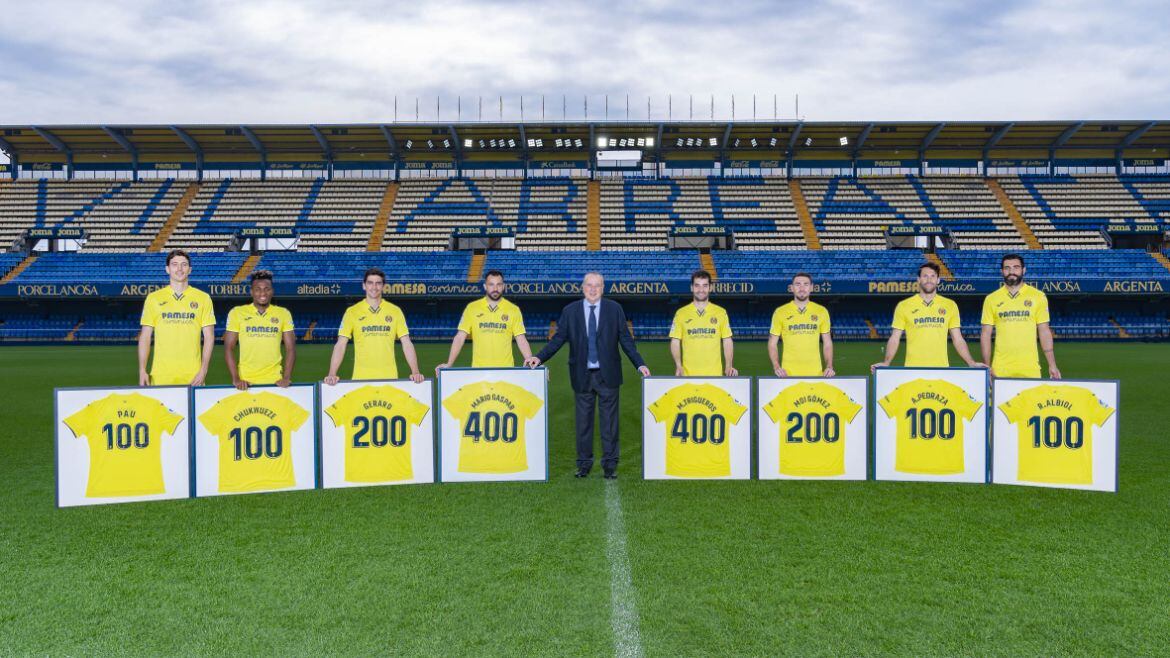 Los homenajeados fueron Mario Gaspar con 419 partidos oficiales, Manu Trigueros (412), Sergio Asenjo (255), Moi Gómez (215), Gerard Moreno (204), Samu Chukwueze (142), Alfonso Pedraza (126), Pau Torres (120) y Raúl Albiol (116).