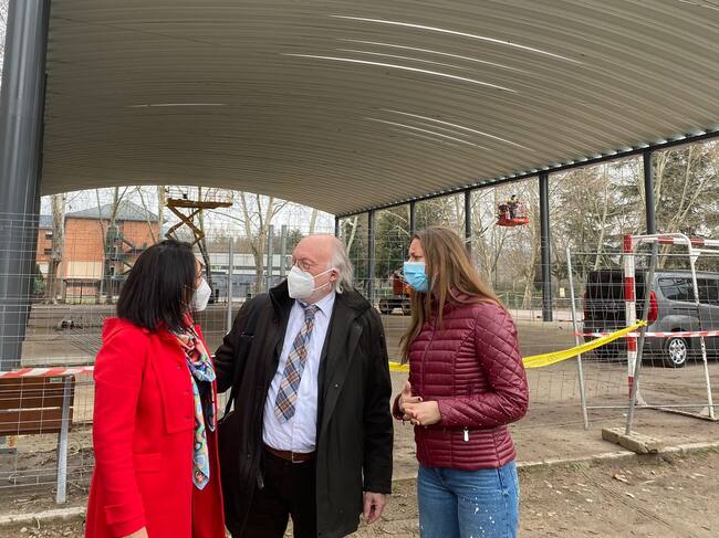 La delegada de la Junta en León, Ester Muñoz ha visitado las obras de construcción de dos porches cubiertos en el colegio Peñalba y el centro escolar de Toral de Merayo. Se trata de dos actuaciones presupuestadas en 250.000 euros que permitirán al alumnado disfrutar del recreo sin tener que soportar las inclemencias meteorológicas. La dotación de este tipo de infraestructuras se hace especialmente necesario, explica la directora del colegio público Peñalba, Emilia Fernández, en centros como Peñalba donde parte del alumnado tiene necesidades especiales.