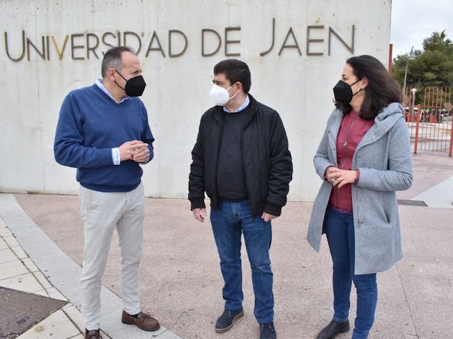 Jacinto Viedma, Francisco Reyes y Mercedes Gámez a las puertas de la UJA. / PSOE de Jaén.