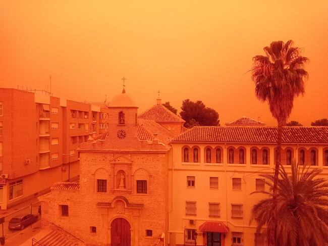 La calima cubre el cielo de color naranja en Lorca / Raquel González