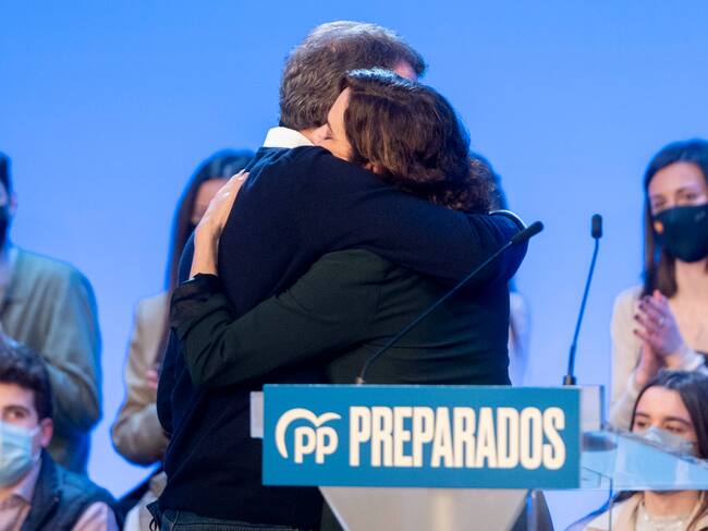 El candidato a la presidencia del Partido Popular, Alberto Núñez Feijóo, interviene en un acto junto a la presidenta de la Comunidad de Madrid, Isabel Díaz Ayuso / Agencia Getty