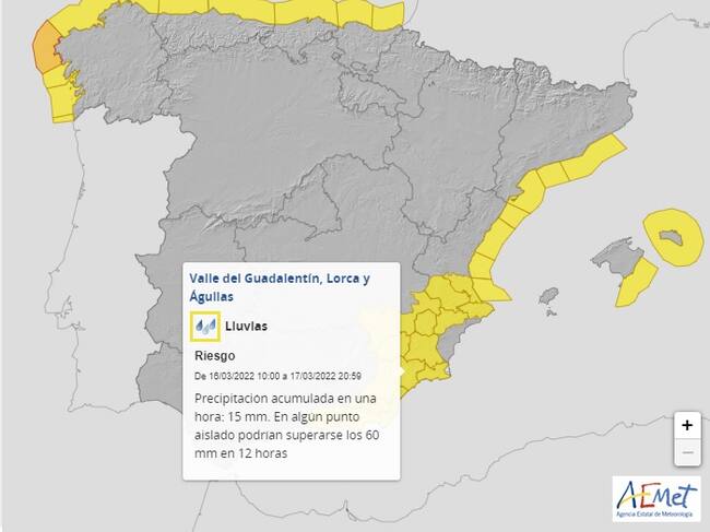 La Agencia Estatal de Meteorología activa el aviso amarillo por lluvias en Lorca