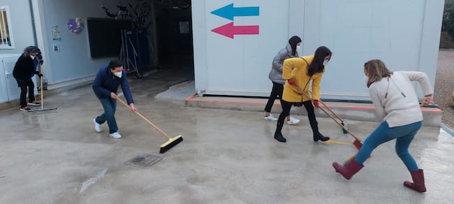 Imagen de archivo de docentes y equipo directivo achicando agua del CEE El Somni