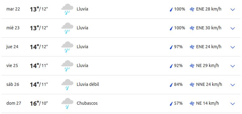 Si las previsiones meteorológicas se cumplen la vuelta de las Fiestas de la Magdalena de Castelló tras dos años de pandemia van a estar pasadas por agua. Esperamos que los malos augurios no se cumplan pero la información meteorológica dibuja una semana de precipitaciones durante todos los días.
