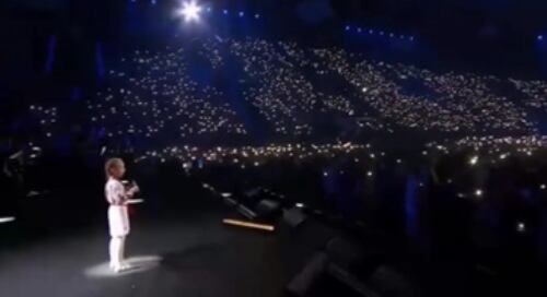 La actuación de la pequeña cantando "Ucrania aún no han muerto", el himno nacional, fue acogida con entusiasmo por el público, que sacó las linternas de los móviles provocando una escena muy emotiva publicada en redes sociales.