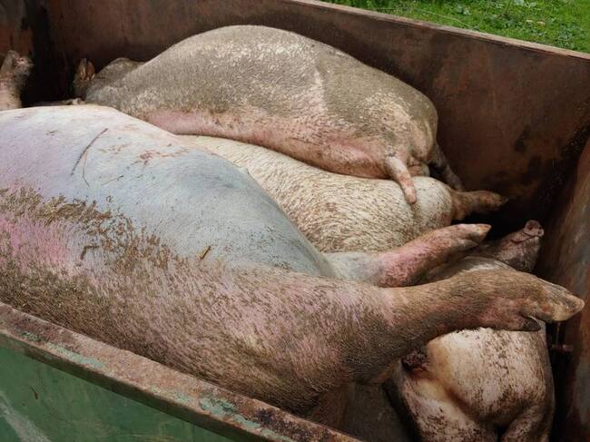 La muerte se produce, principalmente, por la ansiedad a la que se ven sometidos los cerdos, dándose también algunos casos de canibalismo.