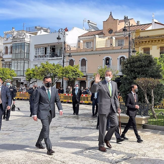 A su llegada, al entrar en la Plaza del Cabildo ha saludado al presidente de la Junta de Andalucía, Juanma Moreno, y autoridades. Posteriormente, al llegar al antiguo Ayuntamiento, ha saludado al alcalde de Sanlúcar de Barrameda, Víctor Mora, para luego mantener encuentros con entidades representantes del V Centenario, primero, y con la Corporación municipal, después. Al finalizar, Mora le hará entrega de la llave de oro de la ciudad.
