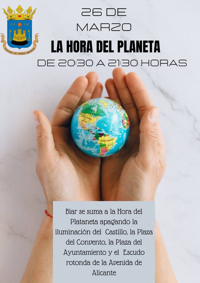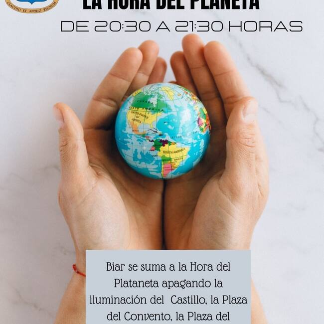 El Ayuntamiento de Biar se suma una vez más a la celebración de la Hora del Planeta con el apagado simbólico de la iluminación del Castillo, uno de los más visitados de la zona, y del escudo rotonda situado en la Avenida de Alicante