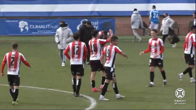 Los rojiblancos celebrando la victoria en Talavera en el partido de ida