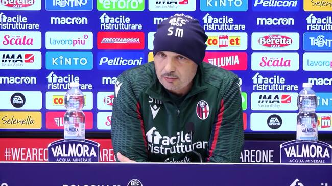 Shasha Mihajlovic, entrenador del Bologna en la sala de prensa
